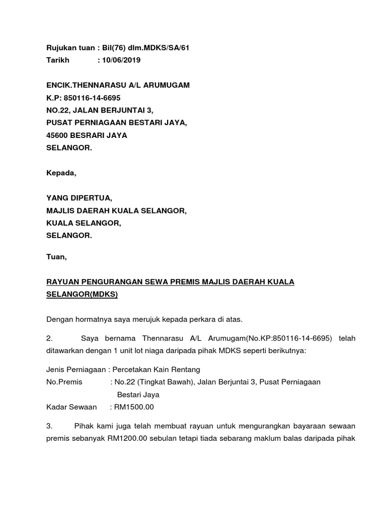 Inilah contoh surat rasmi rayuan pengurangan sewa dan informasi lain yang berhubungan dengan topik contoh surat rasmi rayuan pengurangan sewa serta peluang bisnis investasi keuangan di. Sebagai satu usaha penambahbaikan mulai 2020 Tabung Haji telah memperkenalkan Borang Rayuan Haji yang seragam bagi mempertingkatkan. Contoh Surat Rasmi Memberi Kebenaran have a graphic associated with the otherContoh.